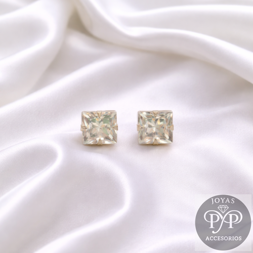 Aretes elaborados en plata, con un diseño cuadrado elegante y una circonia central de alto brillo que refleja la luz de forma sofisticada. Su estilo clásico y moderno a la vez los convierte en el accesorio perfecto para cualquier ocasión, desde el uso diario hasta eventos especiales.